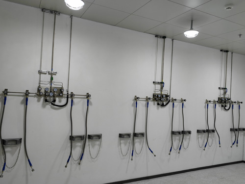 1.氣瓶間內的壓力自動調節面板開關與實驗所室內的的氣路網絡終端期間所采用SS316LBA管做出對接,給水管內單單從表面滑潤度為Ra<0.4umBA級給水管。